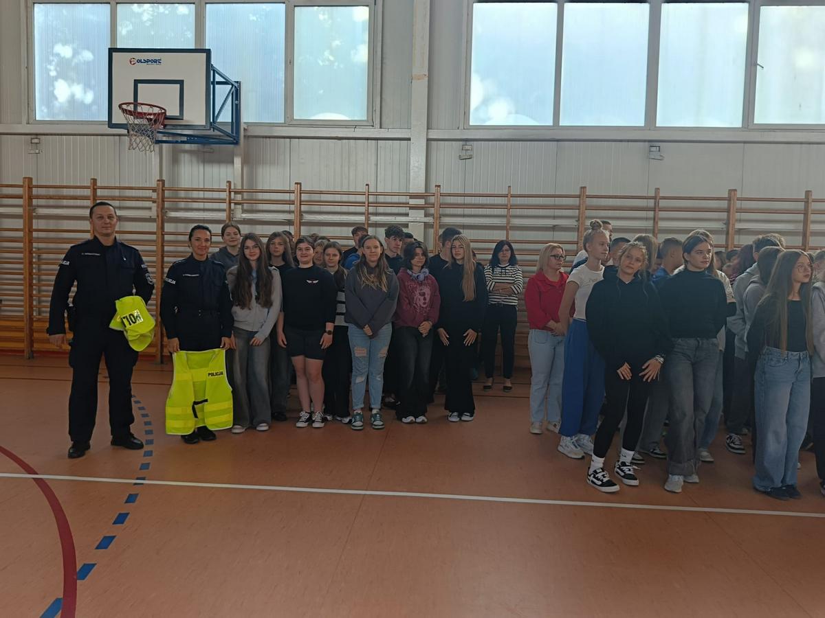Mundurowi mówili o rzeczach ważnych dla bezpieczeństwa na drodze. Przekonywali o obowiązku i konieczności noszenia odblasków przez osoby, które idą po zmroku poza terenem zabudowanym. Policjanci opowiedzieli o prawidłowym zachowania się w autobusach szkolnych, a w szczególności na zachowanie ostrożności podczas wysiadania i wychodzenia na jezdnię.