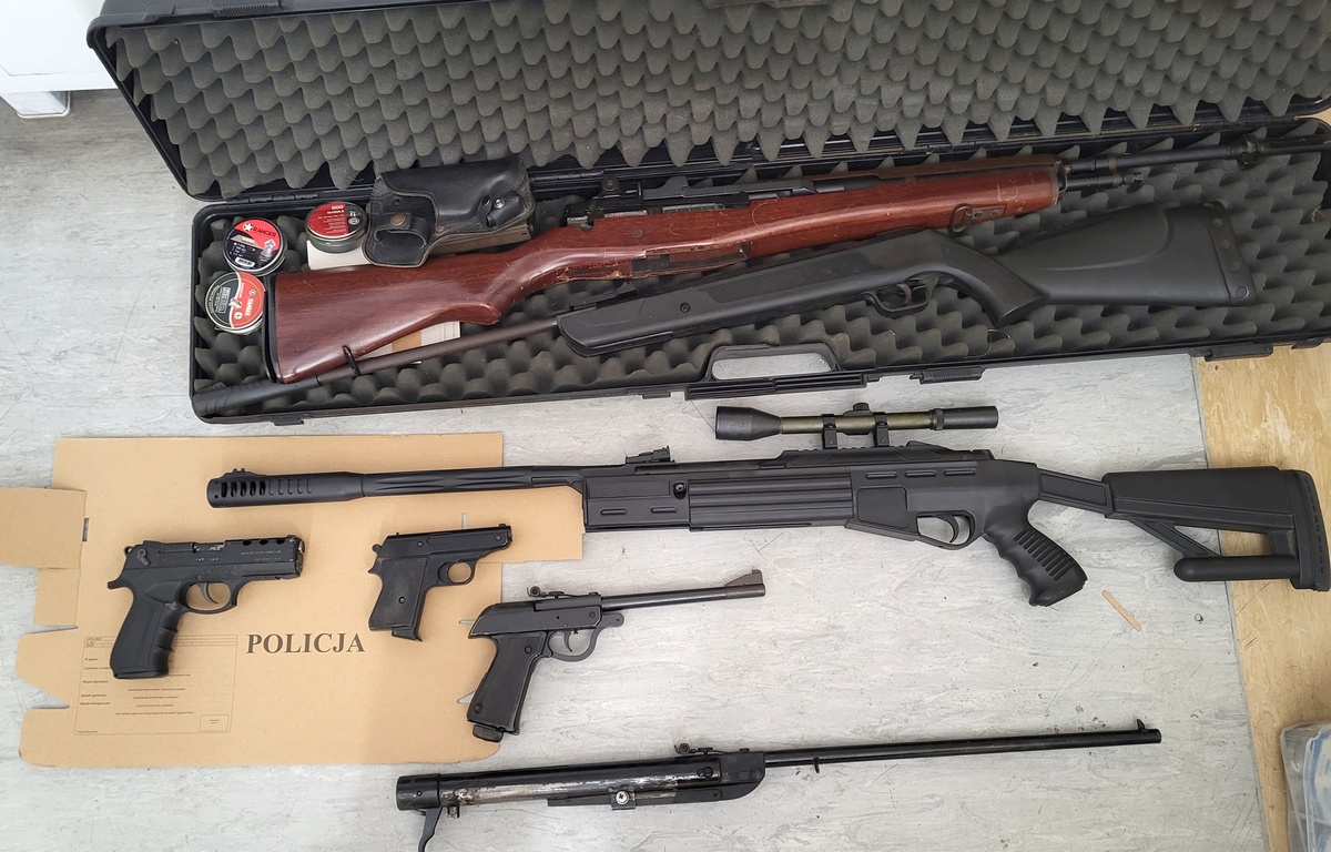 Łącznie w mieszkaniu 48-latka policjanci zabezpieczyli 6 jednostek różnego rodzaju broni pneumatycznej, która zostanie przekazana do badań balistycznych oraz pudełka ze śrutem. Mundurowi znaleźli też niewielką ilość marihuany.