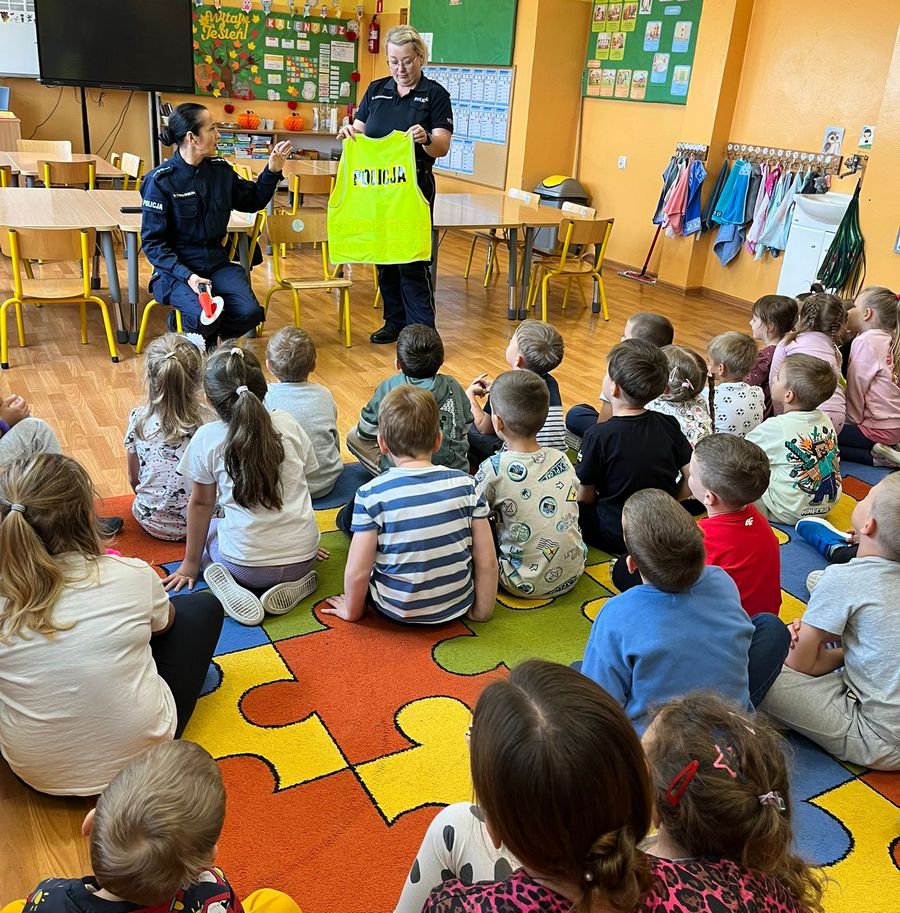 Policjantki opowiedziały jak bezpiecznie poruszać się po drodze. Zwróciły uwagę jak ważne dla ich bezpieczeństwa są elementy odblaskowe, które noszą na sobie.