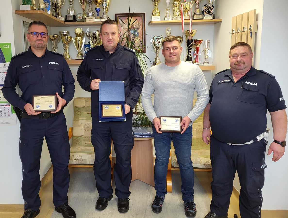 Podczas spotkania Przewodniczący Zarządu Terenowego Niezależnego Samorządnego Związku Zawodowego Policjantów asp.szt. Krzysztof Chłodziński wręczył jubilatom okolicznościowe tabliczki. Podziękował policjantom za lata rzetelnej i ofiarnej służby dla społeczeństwa.
