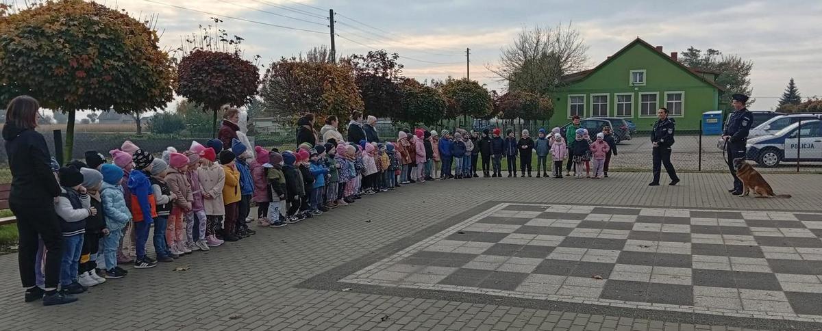Policjanci z Radziejowa opowiedzieli dzieciom z Przedszkola Gminnego „Kujawski Zakątek” w Skibinie o swojej pracy.