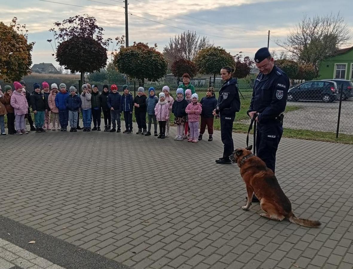 W trakcie spotkania dzieci usłyszały ważne rzeczy na temat bezpieczeństwa na drodze i w domu. Szczególnie podobał się pokaz wyszkolenia policyjnego psa.