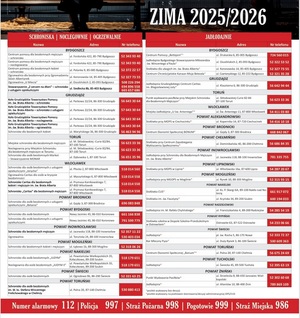 wykaz schronisk i jadłodajni 2025/26