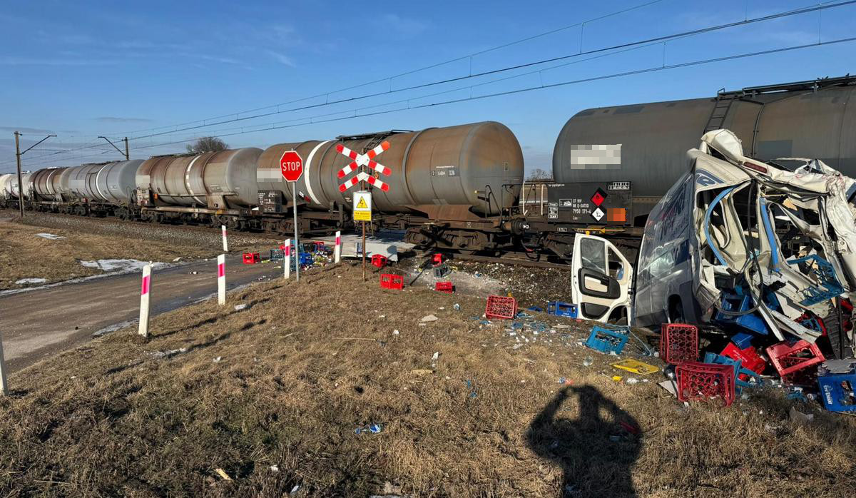 Do wypadku doszło wczoraj (19.02.26r.) około godziny 14:25 w m. Anusin (gm. Piotrków Kujawski) na niestrzeżonym przejeździe kolejowym. Jak wstępnie ustalili policjanci, kierujący Fiatem Ducato 23-latek z pow. mogileńskiego, nie ustąpił pierwszeństwa przejazdu i zderzył się z pociągiem towarowym relacji Gdańsk-Koluszki.