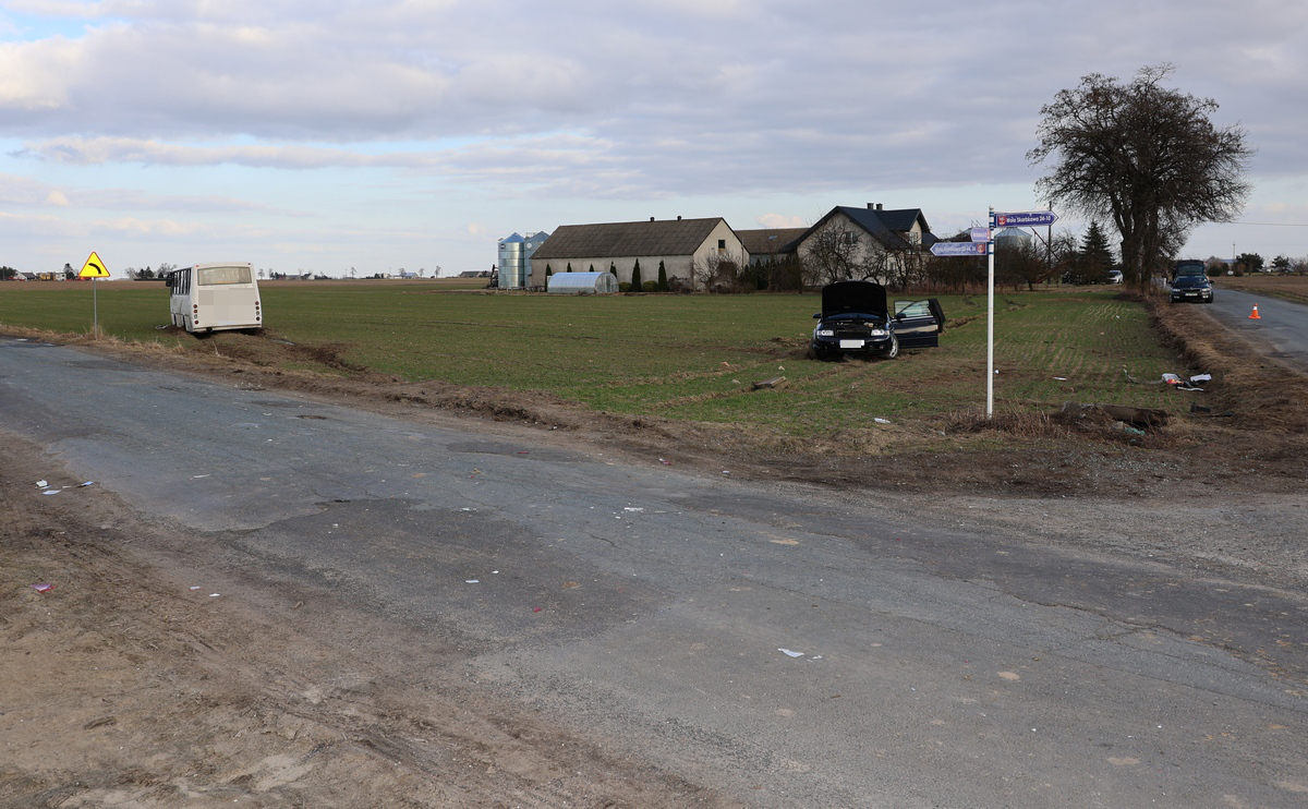 Trzy osoby trafiły do szpitala po zderzeniu autokaru z Audi. Wstępne ustalenia wskazują na winę kierowcy autobusu, który wymusił pierwszeństwo. Okoliczności tego zdarzenia wyjaśni policyjne dochodzenie.
