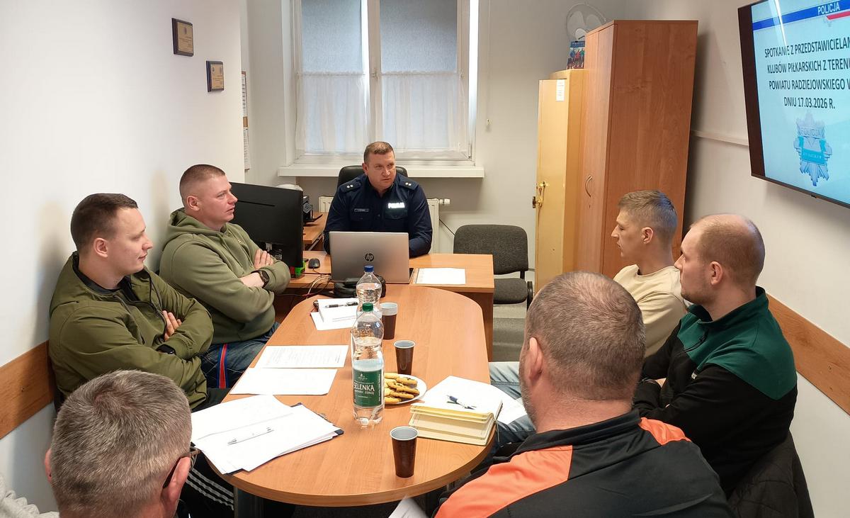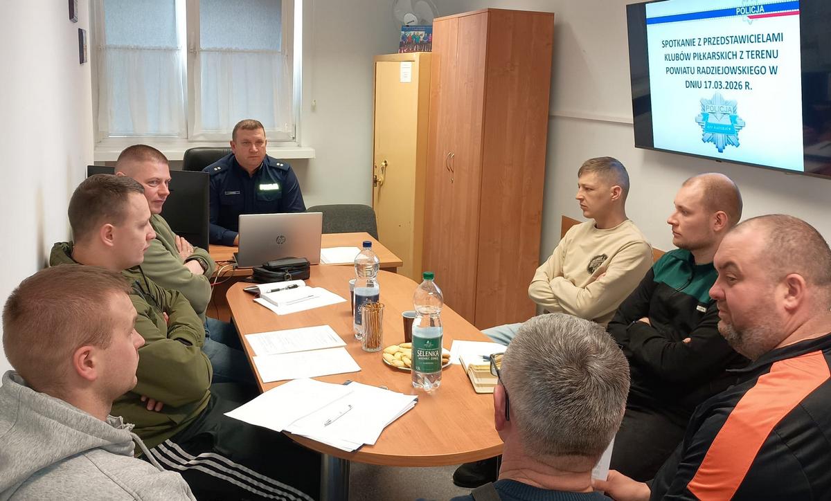 Radziejowscy policjanci gościli przedstawicieli lokalnych drużyn piłkarskich. Głównym tematem spotkania było bezpieczeństwo na stadionach, podczas organizowania różnego rodzaju imprez.