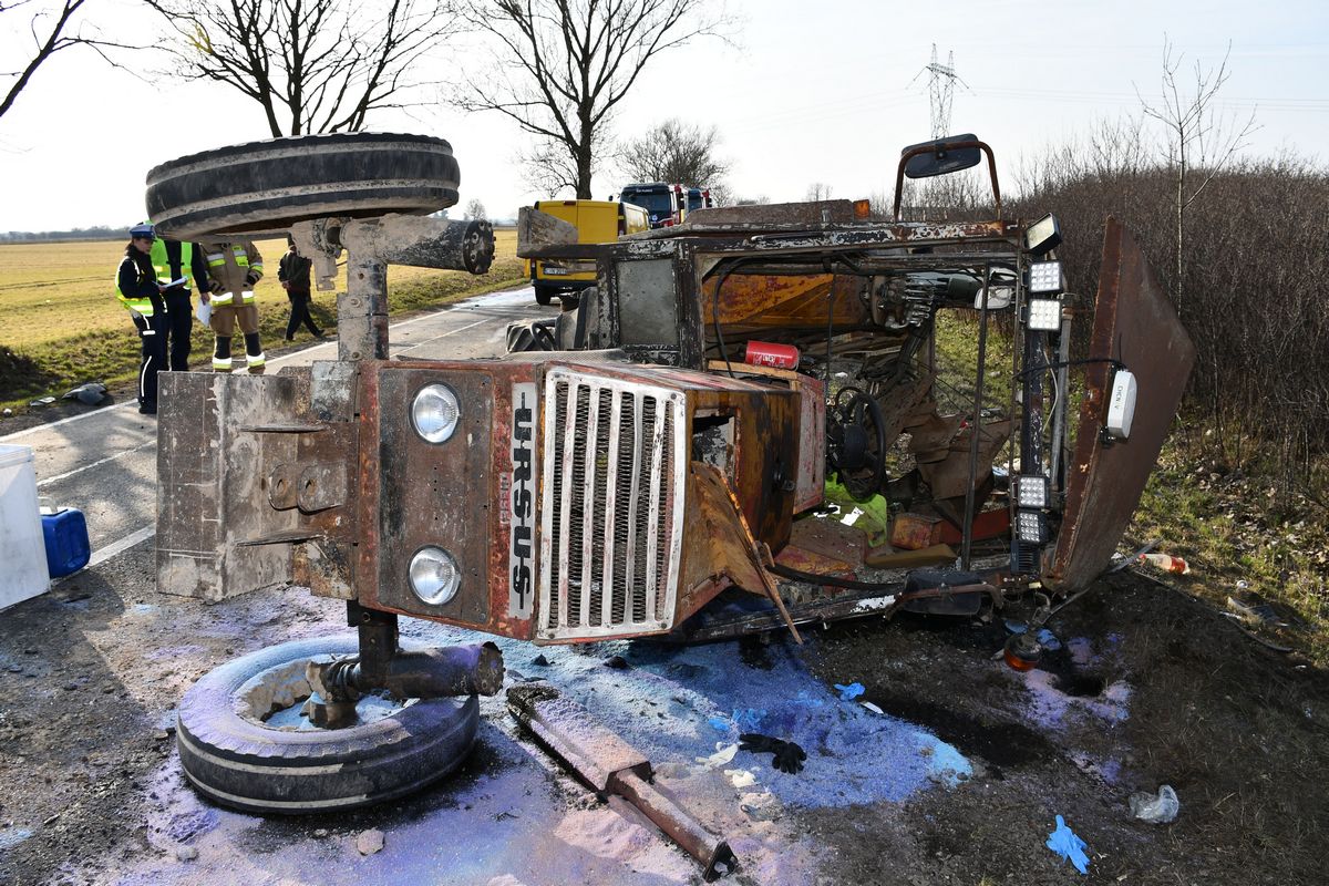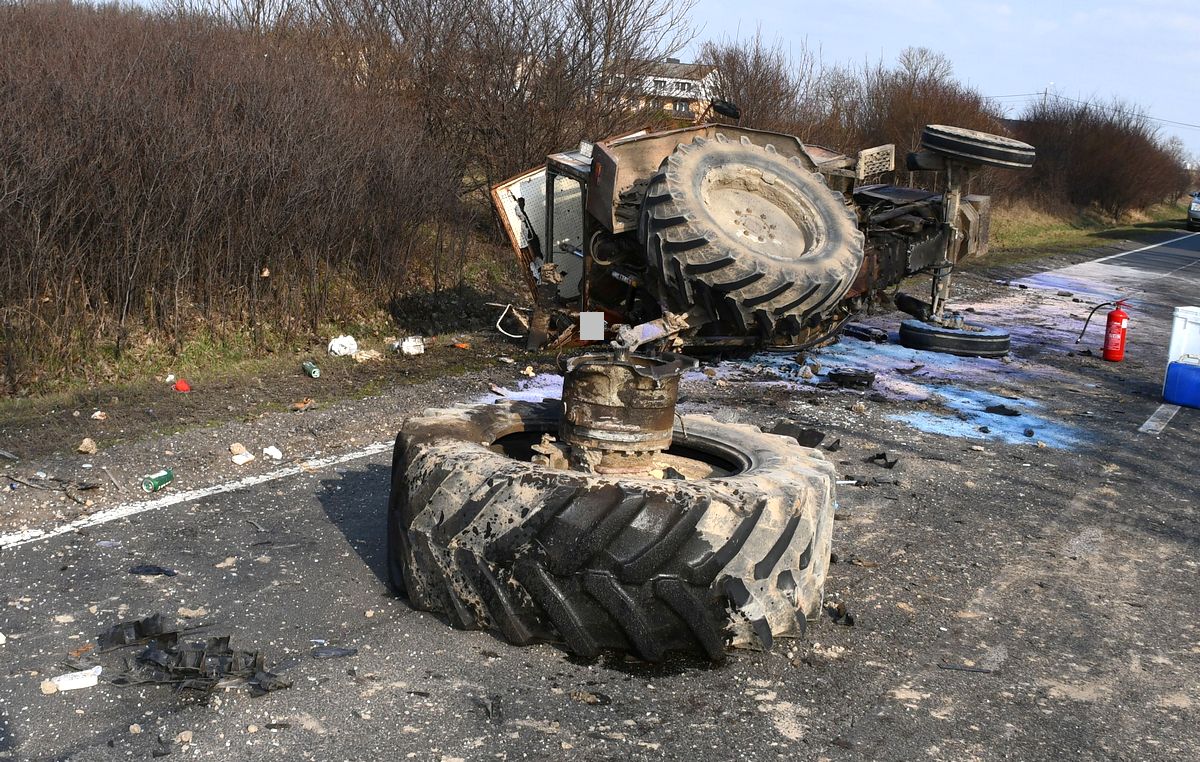 27-letni kierowca ciągnika został przewieziony do szpitala na badania. Mundurowi ustalili, że kierujący pojazdami byli trzeźwi.